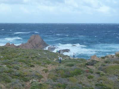 When we arrived there we walked a loop track around the coast.It was very windy but not too cold, there were "white horses" dancing all over the sea.