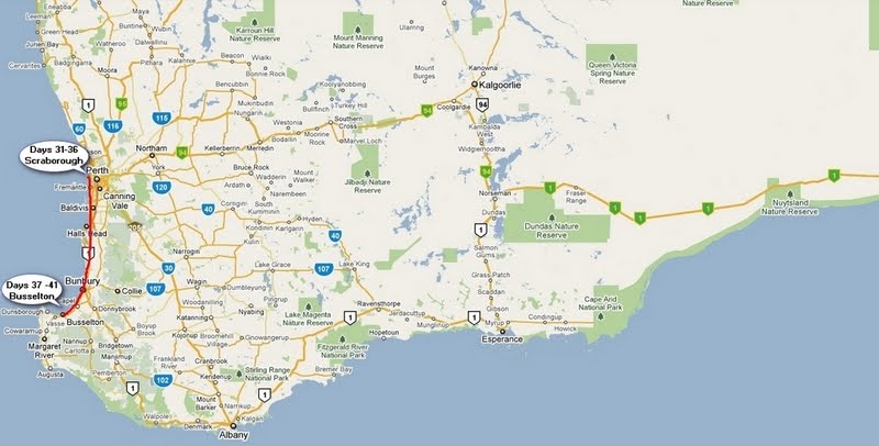 Left Scarborough this morning and followed the highways and byways to Busselton.
